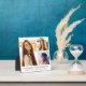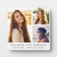 Une plaque photographique élégante pour célébrer le diplômé avec un collage de trois photos et son nom, l'année de classe et l'école en typographie moderne.