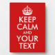 Design personnalisable "Keep Calm and Your Text" en rouge et blanc.