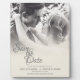 Kissing Wedding Couple in Monochrome Wedding card on which the image, moments, noms, location and date can be customized in the modèle.