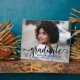 Élégant et élégant panneau de graduation avec chevalet comporte une photo de haut niveau avec une superposition de script noir "diplômé". Personnalisez le texte personnalisé moderne avec le nom de votre élève, l'école et l'année de classe. Fait un beau gardien à afficher dans votre maison!