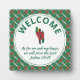 DOMINICA FLAG Christian Plaque de bienvenue pour les hommes et les femmes qui aiment la Dominique. Cette PLAQUE D'ACCUEIL ajouterait à votre décor de hall, de réception ou de salon. Le dessin montre le drapeau de DOMINICA dans un motif carrelé. Au centre, il y a une petite carte du pays avec un texte courbe qui dit BIENVENUE. Ce texte est personnalisable, de sorte que vous pouvez changer à votre propre salutation dans votre propre langue. En bas, il y a un verset de l'Écriture de Josué 24:15 - "Quant à moi et à ma maison, nous servirons l'Éternel." Ce texte est également personnalisable, vous pouvez donc remplacer par votre verset, devise ou message d'inspiration préférés de la Bible. Cette PLAQUE DE BIENVENUE ferait un merveilleux cadeau pour les nouveaux mariés, la nouvelle maison, les nouveaux chrétiens, pour les anniversaires, Noël, le Nouvel An, et tout au long de l'année. Cela serait bien dans les maisons privées et les lieux publics, tels que les restaurants, les bars à vin, les centres culturels, les ambassades, les écoles, les églises, etc - partout avec un décor ou une influence sur le thème DOMINICAIN. Les articles correspondants peuvent être trouvés dans la collection DOMINICA, vous pouvez donc créer des ensembles de cadeaux fantastiques.