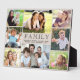 Une élégante plaque taupe pour afficher vos photos de famille préférées avec un collage photo de 8 parents, enfants, grands-parents, petits-enfants, autres membres de la famille, animaux de compagnie, etc, "FAMILY" dans la typographie élégante, et vos noms de famille ou d'autres textes en typographie simple.