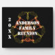 Vous organisez un dîner de réunion familiale ou un pique-nique? Cette plaque sera très bien placée sur une table d'accueil ou à la tête du buffet, donnant à votre réunion une sensation hors du monde. Cette plaque de tableau présente un texte noir arrière - plan et blanc ainsi qu'un design artistique kaléidoscope aux couleurs orange et jaune. Le nom et l'année de votre famille accompagnent ce design. Tout le texte peut être facilement personnalisé pour créer un signe de bienvenue aussi unique que votre famille.