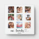 Make your own unique family photo collage. Use four, 9 of your favorite photos of your family, friends or pet! White background. Black text: our family - with a heart. Add a year.