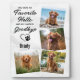 Célébrez votre meilleur ami avec une plaque commémorative personnalisée dans un design moderne en marbre blanc. Cette plaque de collage photo unique est le cadeau idéal pour vous, votre famille ou vos amis pour honorer ceux qui sont aimés. Nous espérons que votre cadre de photo mémorial vous apportera joie, paix, et des souvenirs heureux. Citation : "Vous étiez mon Bonjour préféré, et mes adieux les plus durs." Customisez avec quatre photos de votre animal favori, et le nom . Voir "personnaliser ce modèle" pour changer de photo et de nom. DROIT D'AUTEUR © 2020 Judy Burrows, Black Dog Art - Tous droits réservés. Favori Hello Hardest Goodbye Dog Pet Memorial plaque
