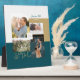 Prenez vos moments spéciaux avec cette plaque photo moderne. Cette plaque de collage photo personnalisée comporte des blocs de couleurs et de la typographie "meilleur papa jamais" avec un thème gris, or et vert turquoise. Personnalisez les photos et le texte. Un cadeau élégant et unique pour la Fête des pères.