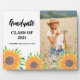 Cette plaque de Graduation florale est décorée de tournesols aquarelle et de verdure. Facilement personnalisable avec votre photo et vos détails. Utilisez l'outil de conception pour modifier la taille, le style ou la couleur du texte. En créant notre oeuvre, vous ne trouverez pas cette image exacte d'autres créateurs. Aquarelle originale © Michele Davies.