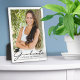 Design do-it-yourself simple avec téléchargement facile de la photo de votre diplômé sur cette plaque de chevalet-arrière avec un titre de script moderne et élégant DIPLÔMÉ avec une casquette noire et personnalisé avec le nom de votre diplômé, l'école ou l'année de classe. CONSEIL PHOTO : Choisissez une photo avec le sujet au milieu et/ou pré-rognez votre image à une forme similaire comme indiqué AVANT le téléchargement. Contactez le concepteur via Zazzle Conversation ou makeitaboutyoustore@gmail.com si vous souhaitez modifier le design ou sur un autre produit.