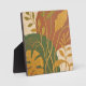 A bold and textural abstract painting featuring golden-yellow and olive-green leaves against a rich background of terracotta, deep green, and creamy white. Thick, expressive brushstrokes give the leaves and background a tactile, painterly quality. The warm earthy tones and modern composition create a stylish, organic artwork with strong visual impact.
