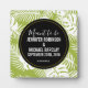 Plaque photo mariage avec motif répétitif de grands feuilles de palmiers sur un arrière - plan vert olive. Moderne tendance et tropical. Un cercle noir avec une bordure intérieure dorée superposée avec vos détails personnalisés à l'intérieur.