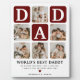 Créez votre propre plaque DAD avec ce montage et ce texte de grille multi-photo moderne. Design dispose de 6 Photographies avec des carrés d'angle incurvés avec le texte DAD en blocs de burgandy qui peuvent être changés en n'importe quelle couleur. Le texte 'World's Best Daddy' avec une citation de père mignon qui peut être conservé ou customisé pour vous rendre personnel! et un petit coeur mignon avec le ou les nom(s) des enfants. CONSEIL PHOTO : Recadrez et centrez vos photos avant de les télécharger pour obtenir de meilleurs résultats.