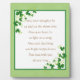 Belle plaque de table avec une bénédiction irlandaise, ornement shamrock et arrière - plan texturé or/vert : Que vos pensées soient aussi heureuses que les shamrocks. Que votre coeur soit aussi léger qu'une chanson. Puisse chaque jour vous apporter des heures joyeuses, Qui restent avec vous toute l'année.