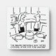 Une femme se tient immobile dans sa cuisine en préparant le dîner. Elle explique à son mari que la recette disait "Tenez-vous après la cuisine" ! Drôle dessin animé de cuisine. Plaque Drôle.