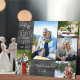 Plaque photo Anniversaire mariage que vous pouvez personnaliser pour n'importe quelle année et 5 de vos photos préférées. Le texte dit "N° années à notre heureux toujours après" et le modèle est mis en place pour vous d'ajouter l'année anniversaire, votre nom et la date établis. Le design a un look rustique gris en bois de pays, avec des lettres décontractées et une typographie de police maigre. Téléchargez vos photos, de gauche à droite, qui seront affichées dans un mélange de formats portrait, carré et paysage. Si vous rencontrez des problèmes de placement de vos images, essayez de recadrer la forme appropriée avant de télécharger.