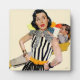 Artiste : Mike Ludlow | Femme en robe rayée noire et blanche regarde l'homme sur le canapé
