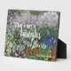 Plaque à charnière qui présente l'image de la photo colorée, jardin d'été de fleurs, y compris Zinnias, Nicotiana rose, et Salvia Bleue, ainsi qu'une citation populaire de l'essayiste Ralph Waldo Emerson qui dit : "La terre rit dans les fleurs" et imprimé en blanc, texte stylisé. Un joli design floral ! Fait un grand cadeau pour la famille et les amis!