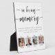 Ce panneau de mémorial photo mariage personnalisé présente un titre de script de calligraphie moderne et un design minimaliste. L'en-tête de texte du script est une image qui ne peut pas être modifiée. L'image de titre peut être redimensionnée pour s'adapter à n'importe quelle taille d'affiche ou de panneau. Tous les autres textes sont entièrement modifiables. Pour une personnalisation plus avancée de cette conception, il suffit de cliquer sur le bouton "Customiser" ci-dessus.