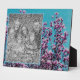 Plutôt début printemps, magnolia rose fleurit contre un ciel bleu fait avec une peinture craquée look vintage ajouter votre propre photo chevalet de retour plaque de table. Photographie numérique de Susan. Visitez Smilin' Eyes Posters pour plus d'empreintes et d'affiches florales, animales, naturelles et d'arts numériques.