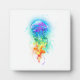 Grande méduse irisée, artistiquement dessinée, brillante, avec de longues tentacules sur le blanc, peinte sur l'arrière - plan multicolore. Méduse arc-en-ciel.