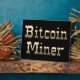 Ce design comporte les mots "Bitcoin Miner" écrits dans un style ancien de l'ouest. Il est installé sur un arrière - plan noir.