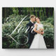 Plaque photo mariage personnalisée pour présenter votre propre mémoire photo mariage spéciale. Notre design comprend un design photo complet avec votre nom de famille affiché en haut de la plaque. Le mot "Amour" est conçu dans un style de script blanc écrit à la main qui est superposé sur la photo mariage.