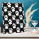 Un motif empreinte de patte chien blanc avec effet éclaboussant de peinture sur un arrière - plan noir.