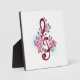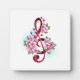 Pink treble clef with delicate, detailed pink Japanese cherry blossoms against white background painted over with light blue paint Blooming pink sakura.