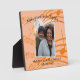 Plaque photo élégante pour couples avec des notes de musique pêche et texte PERSONNALISABLE, conçue avec des notes de musique et le thème 'Faire de la douce musique ensemble'. Ajoutez vos noms et dates et téléchargez votre photo verticale. Cette plaque pour couples ferait un beau cadeau de mariage ou d'anniversaire pour ce couple spécial, ou un beau cadeau de Saint-Valentin pour un être cher. D'autres couleurs sont disponibles ou vous pouvez modifier le design à la couleur (s) souhaitée.