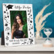 A fun graduation plaque featuring a senior photo framed by playful hand-drawn doodles including a graduation cap, diploma, stars, hearts, and confetti on a bold black background. The graduate's name appears in script at the top with the school name and class year below. A charming tabletop keepsake that doubles as a graduation party display or a lasting gift.