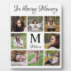 Honorer votre être cher avec une plaque de collage photo mémorial personnalisée dans un design blanc et noir. Cette plaque commémorative unique monogrammée initiale et nom photo keepsaké est le cadeau idéal pour vous, famille ou amis à honorer ceux qui sont aimés. Nous espérons que votre photo de famille en plaque de mémoire d'amour vous apportera joie, paix, et des souvenirs heureux. Customisez avec 8 photos de vos proches préférés, monogramme initial et nom personnalisé. Voir "personnaliser ce modèle" pour changer les photos, l'initiale et le nom. Il est préférable de recadrer vos photos centrées avant de les télécharger. DROIT D'AUTEUR © 2020 Judy Burrows, Black Dog Art - Tous droits réservés. Personnalisé En Mémoire Amoureuse Photo Collage plaque