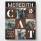Plaque commémorative pour animaux de compagnie comportant 4 photos de votre chaton bien-aimé, un arrière - plan motif rustique en bois, des lettres qui épellent CAT, les mots "pour toujours dans nos coeurs", une patte de chats avec un mot de souvenir, et leur nom.