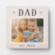 Charmant plaque personnalisée pour la Fête des pères, les anniversaires ou les nouveaux papas présente une photo préférée avec "Papa" ci-dessus en lettres rustiques. Personnalisez avec l'année où il est devenu un père en-dessous, ou ajoutez un message ou un nom personnalisé.