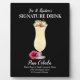 Faites un impact à l'heure de l'cocktail en servant une boisson mémorable qui reflète votre personnalité ! Créez une pièce de conversation avec ce style géométrique moderne Signature Drink Sign by Rockin' Chalk. Personnalisez les noms et les détails de la boisson selon vos besoins. Illustration : grande boisson jaune pâle dans un verre ouragan classique garni d'ananas et d'une cerise et d'une fleur tropicale rose foncé