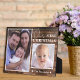 Plaque de collage photo en bois rustique personnalisée avec 2 photos et nom de famille pour en faire un gardien unique du premier Noël du bébé.