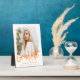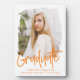 Célébrez la réussite de votre diplômé avec une plaque photo de graduation personnalisée. Cette tenue personnalisée présente la photo du diplômé encadrée par un masque texturé blanc, avec "Graduate" affiché en gras orangé manuscrit. Ajoutez le nom, l'école et l'année de diplôme du diplômé pour créer une pièce d'exposition significative parfaite pour commémorer les jalons du secondaire ou du collège.