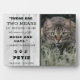 Gardez votre animal de compagnie bien-aimé dans votre esprit et dans votre coeur pour toujours avec cette plaque commémorative de la photo d'animal de compagnie. Ce design présente un aspect rustique avec du bois gris comme arrière - plan avec une citation qui dit "Il y a deux moyens de se protéger des misères de la vie : la musique et les chats" par Albert Schweitzer. Personnalisez cette plaque commémorative du chat avec le nom de votre chaton bien-aimée et les dates de commémoration.