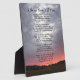 Cette belle plaque photo avec chevalet montre les couleurs spectaculaires d'un coucher de soleil en Californie du sol sombre et l'horizon rouge brillant à l'extraordinaire gris et blanc nuages bouffants au-dessus. Cette belle photo a été prise par mon fils, David Mann. Les mots sur cette plaque photo se lisent comme suit : Je n'ai jamais vu, jusqu'à vous Combien de fois le soleil s'est-il couché? Combien de fois a-t-il augmenté ? Chacun et chacun différent, Quand vu de nos propres yeux. >br> J'ai vu tant de couchers de soleil, depuis les jours sur terre je suis venu. Et bien qu'ils aient tous été différents, d'une certaine façon, ils avaient tous l'air identiques. Pourtant, un jour ils étaient différents. Leur brillance spectaculaire que j'ai vu. Quel jour était-ce, demanderez-vous ? C'était le jour où tu es venu me voir. Un monde autrefois ennuyeux et normal, De jour en jour je suis allé. Mais je n'ai jamais vu sa beauté complète, Jusqu'au jour où vous m'avez été envoyé. Je vous loue, Dieu, pour celui que j'aime, qui m'a ouvert les yeux et le coeur. Mon âme-soeur que vous avez créé Pour moi dès le début. Poème d'Elizabeth Williams