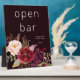 Bienvenue à vos invités au bar avec cette plaque de plaque de marsala fleurie rose et bordeaux encadre ouverte barre. Ne vous inquiétez pas de saisir un chevalet ou un cadre. Ce signe est prêt à partir. Utilisez-le également pour plusieurs événements. Disponible avec un arrière - plan noir, blanc, bordeaux, bordeaux foncé (rouge) et rose.