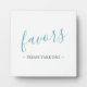 Conçu pour s'adapter à ma collection moderne de papier à lettres mariage, cet élégant panneau de style lettre à main permet aux clients de savoir où se trouve la table de faveur. Personnalisez avec une ligne de texte personnalisé dans un script de calligraphie bleu turquoise en lettrant à la main typographie (illustré par "Favors"). Parfait pour les réceptions de mariage, les douches nuptiales, les baby showers simples et les douches en couple. Pour voir la suite correspondante, visitez www.zazzle.com/dotellabelle