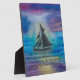 Inspirational Desk Art pour la maison ou le bureau! Représentation de l'art original, "Voile sur mer calme" avec verset de la Bible. Psaume 139:9-10, "Si je prends les ailes du matin, et si je demeure dans les extrémités de la mer; Là, ta main me mènera, et ta main droite me tiendra." ART : Un voilier silhouettes contre un ciel violet sur des mers turquoises tranquilles tandis que la lumière du soleil se brise à travers les nuages pour fournir une lumière guide angélique (original en pastels doux sur papier).
