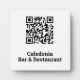 Plaque promotionnelle bar ou restaurant avec code QR. Montrez votre propre conception de code QR. Laissez d'autres scanner votre code QR Avec leurs téléphones portables ! Remplacez l'image par votre propre code QR téléchargé. Inclut le nom de l'établissement. Noir et blanc. Il existe différents sites web qui vous permettent de créer et de télécharger gratuitement des codes QR. Les codes QR peuvent être créés pour des sites Web, des courriels, le Wi-Fi, des cartes Vards et de nombreuses autres utilisations. Un exemple est https://www.qr-code-generator.com