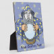 Vieux sorcier avec cape bleue et boule de cristal magique. Utilisez la photo du visage pour customiser. Texte personnalisé.