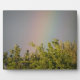 Cette magnifique plaque présente une belle photo paysagère d'un arc-en-ciel au-dessus de quelques arbres. La photo a été prise immédiatement après une tempête de pluie pour capturer les couleurs vives de l'arc-en-ciel. Le ciel environnant est gris et couvert de nuages.