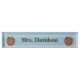Plaque signalétique du bureau du maître d'école élégant faite dans un bleu-clair, avec des graphiques d'une pomme brune de style de clipart (images graphiques), des deux côtés. Le texte brun fait sur commande est prêt à personnaliser. Fait une grande idée de cadeau.