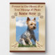 Plaques commémoratives avec PHOTO. Tapez "À jamais dans nos cœurs" et/ou votre message, nom de l'animal, date de naissance et de décès. Cliquez sur "Modifier" pour votre photo ou supprimer. APPEL à la designer Linda : 239-949-9090 pour vous AIDER à personnaliser cette plaque commémorative ou créer un design différent, des couleurs différentes ou concevoir ceci sur différents produits. Vous ou la designer Linda pouvez TRANFÉRER ce design avec votre texte et votre photo sur votre choix de différents produits. Idées de cadeaux de deuil pour chiens merveilleux et personnalisés.