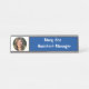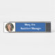 vous pouvez placer la photo de l'employé de l'entreprise et son nom est un arrière - plan bleu plaques de nom