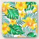 Hard plastic coaster is shown in a lovely multi colour tropical palms print.