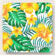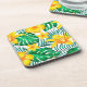 Hard plastic coaster is shown in a lovely multi colour tropical palms print.