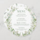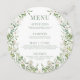 Plongez dans l'élégance classique avec notre carte de menu mariage ronde printemps/été bohème rustique. Décoré d'une couronne de feuilles de verdure délicats et de fleurs blanches, il ajoute une touche parfaite pour rehausser votre expérience culinaire.