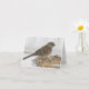 Un mignon Bruant dégustant des graines d'oiseaux d'un plateau d'argent et apporter votre message de "bonjour"; "penser à vous", "merci" et bien plus encore. L'intérieur est vide, vous permettant d'ajouter votre propre message personnel.